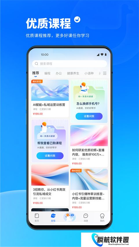 2、在平台中涵盖职业技能、兴趣爱好、亲子教育、健康养生等多个领域的课程。