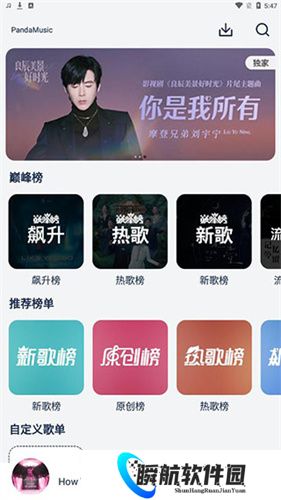 熊猫音乐又叫做音乐世界,是一款收录了海量音乐作品的音乐播放软件,通过该软件各位歌迷能够免费听当下所有的热门歌曲,无损音质下的音乐也不需要付费和会员,充分享受音乐带来的美好。该应用汇集了丰富多样的音乐资源,涵盖了流行趋势和经典怀旧曲目,满足了各个年龄层的音乐喜好。它还引入了全新的翻唱体验,无论是新声演绎经典,男女音互换,音色变化,甚至将民族音乐融合说唱,让您欣赏到经典老歌全新演绎的别样风情。