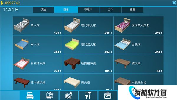 7、另外,点击下方的图标中还有着其他商店,在这里可以购买床、马桶、电视机、插板、电脑、汽车等一系列物品供大家购买,并进行布置;