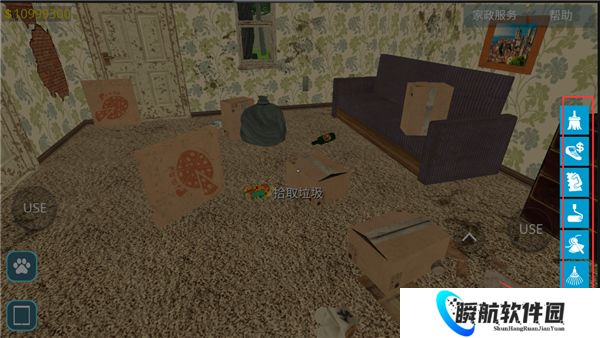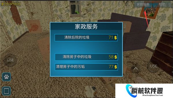 2、成功进入房间,点击右下角的这个图标可以使用道具来打扫*;