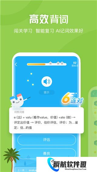 1、专为外语学习者制作的背单词APP,通过图片、声音、释义三方面加快单词的记忆。