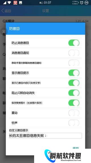 qx模块,也可以被叫做qx模块QXposed,这是专门为qq打造的一个辅助工具,它可以快速对闪照功能进行修复,当好友发送闪照的时候就不需要因为无法再次查看而烦恼,并且它还支持显示被撤回的消息,以便加入