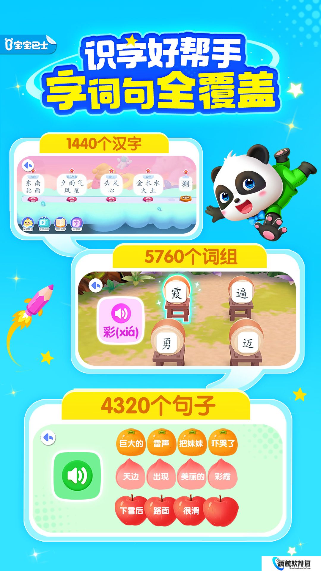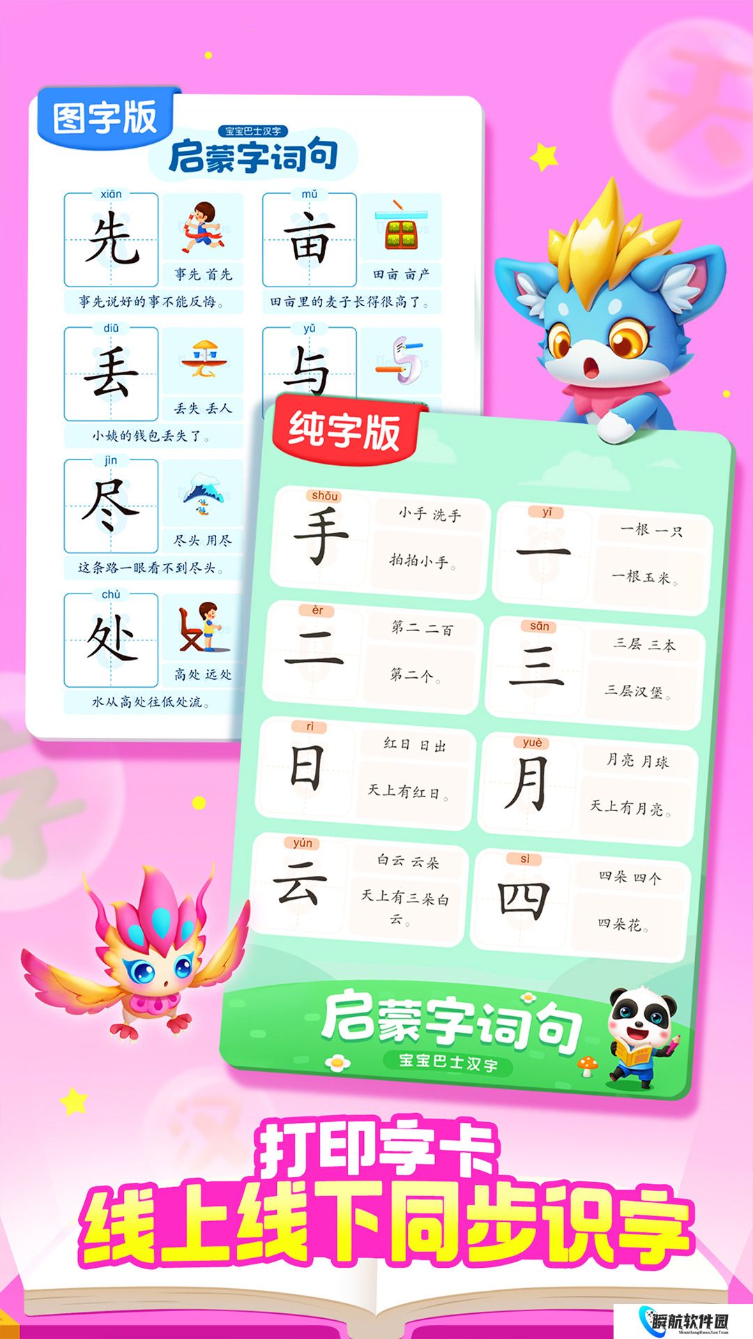 1、宝宝随时跟着可爱的卡通动物逐步学习汉字,以便循序渐进去学习。