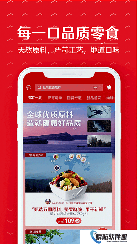 2、汇集来自全球各地的土特产,坚果炒货、蜜饯果干、肉脯鱼干等丰富的零食种类。