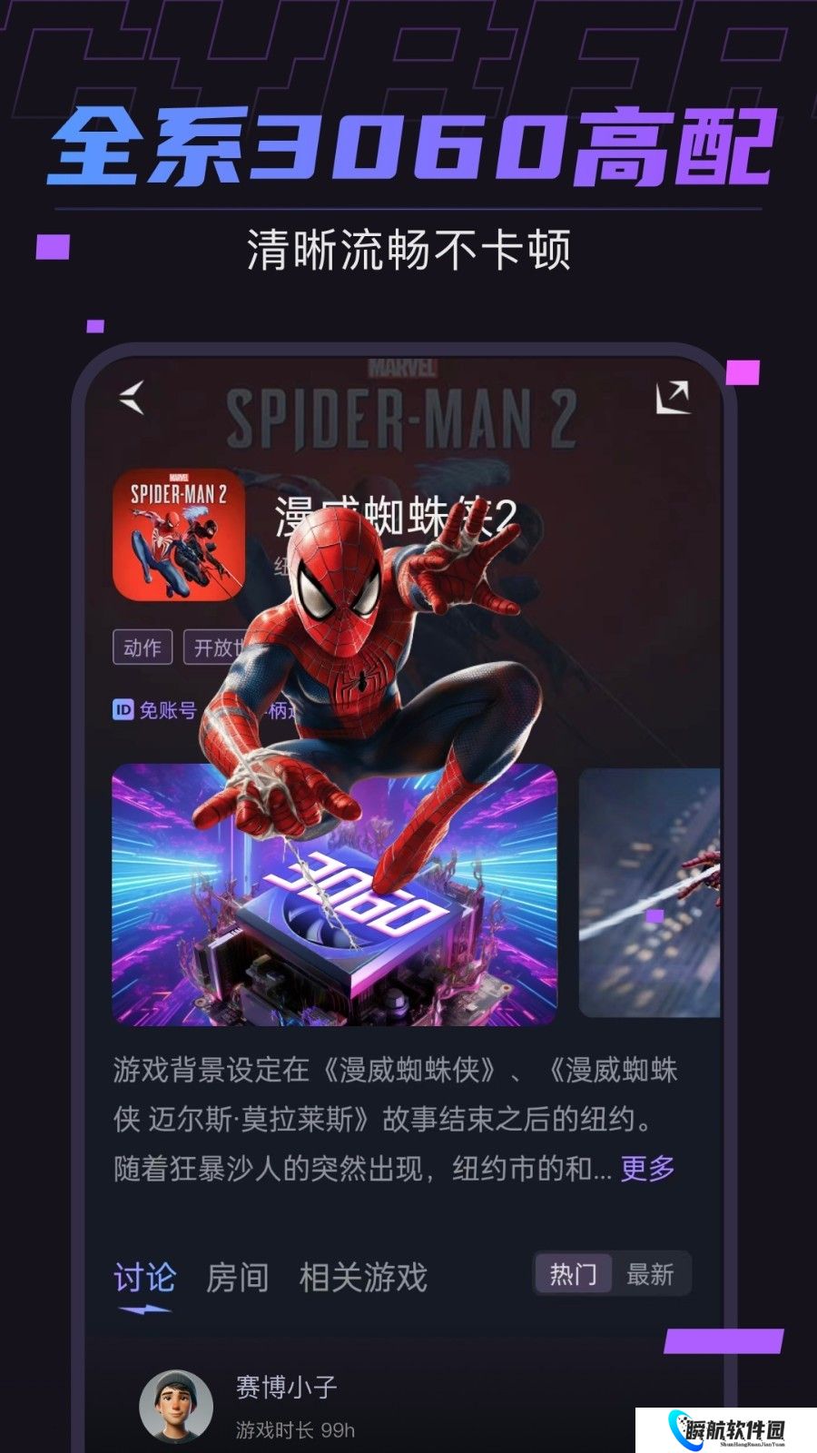 1、随时随地,手机打开马上开玩端游,黑神话悟空、漫威蜘蛛侠2等3A大作。