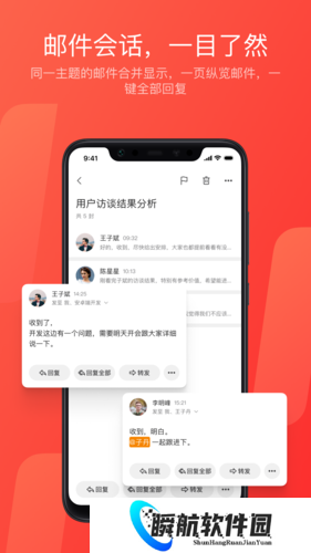 3、手势滑动管理邮件,当然,同一主题的邮件我们已经帮你自动合并到列表中。