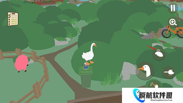 大鹅模拟器手机版是一款充满趣味的模拟休闲游戏。在这个游戏中,玩家将扮演一只俏皮的大白鹅,踏入人类的世界进行一系列淘气冒险,你的目标是潜入人类的住宅,尽情地制造混乱和骚动,你可以尝试偷走园丁的钥匙,将工具藏匿起来,用洒水器给毫无戒备的人类一个惊喜沐浴,或者偷偷品尝各种食物。然而,在享受这些恶作剧的乐趣时,别忘了灵活躲避人类的追捕。大鹅模拟器游戏提供了两种模式:捣蛋模式和疯狂模式,每种模式都能让你体验不同的游戏乐趣,作为一只大白鹅,你将在这个游戏世界中释放出无尽的欢乐和自由,那么,准备好化身为那只淘气的鹅,开始你的混乱之旅吧!