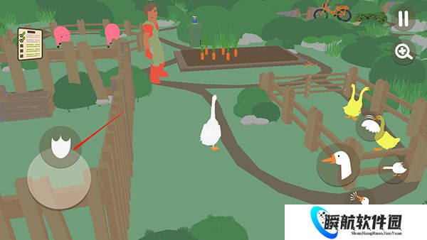5、右手的这些按键可以控制大鹅飞起来,偷东西等等,然后和人类斗智斗勇吧!