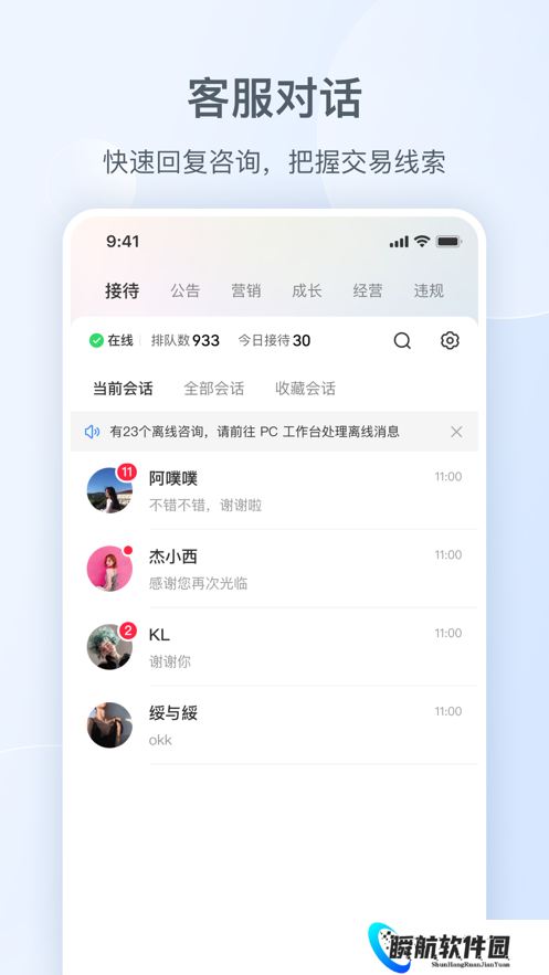 3、客服对话精细化管理,一键结束对话,保持客服界面整洁,专注高质量客户服务。