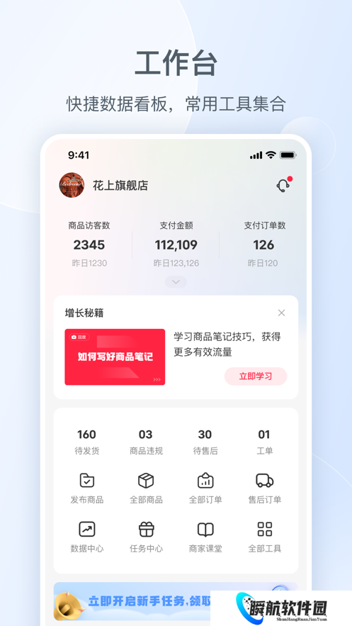 小红书千帆app是一款专为商家打造的店铺管理软件,拥有丰富的店铺管理功能,可以帮助商家提升工作效率更好地管理店铺。商家可以使用它来发送邀评、转交工作、管理客服对话等等,更有工作台快捷数据看板,方便商家