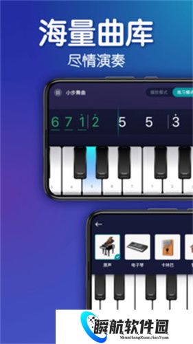4、钢琴键盘弹奏引导帮助您快速识谱,并在此处完整地弹奏复杂曲目。