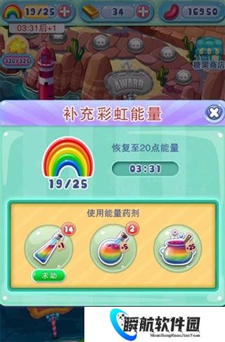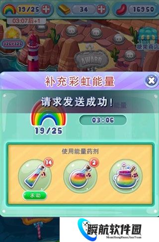 2、也可以找好友求助,首先点击客户端打开界面左上角彩虹桥的后面的加号就会出来一个补充彩虹能量的提示,下面有三个能量瓶,第一个上面有个求助点一下;