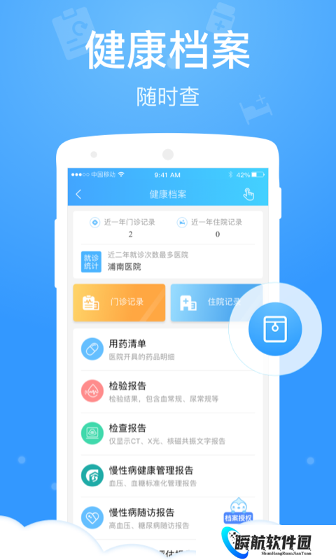 3、得到你的个人的健康档案的内容,随时的都是可以对于你的个人健康档案来进行到查询的。