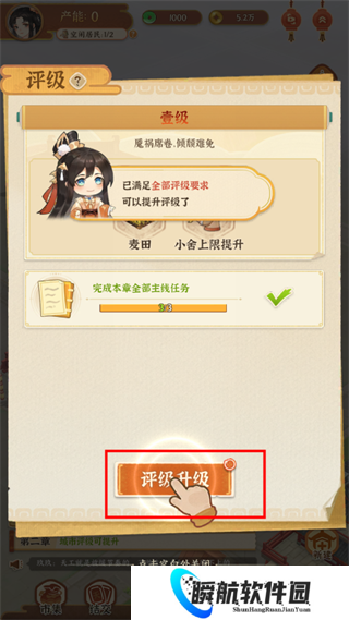 10、完成不同章节的所有主线做任务即可评级升级,升级之后会有更多的不同种类的店铺,以及田地进行解锁