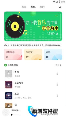 五音也被叫做五音助手,这是一款可以听QQ音乐、网易云等平台付费曲目的软件,不仅所有vip专辑都能曼菲畅听,再加上臻品母带的音质,给歌迷们带来一场高质量的听觉盛宴。独家音乐实验室功能,专门针对那些各大音乐平台找不到的歌曲,还能找到海外的热播曲目。