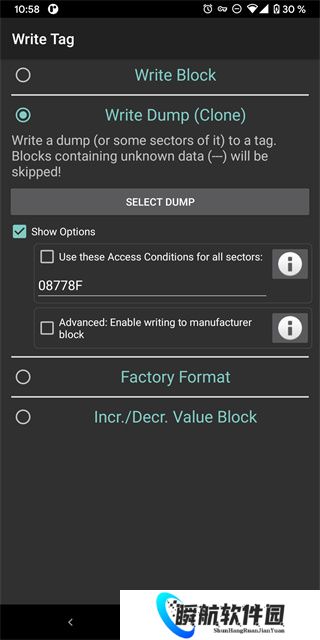 9、勾选刚刚保存的标签,选择后点击软件最下方选择转储进行下一步操作(须注意的是,此时需将CUID空白卡至于手机NFC感应区)。