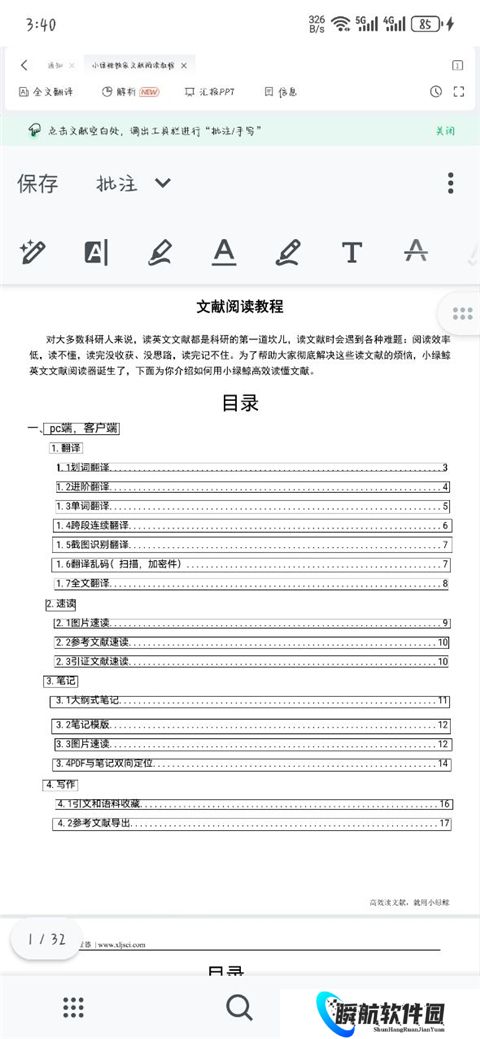 2、在读文献的同时可进行翻译、批注、做笔记,还具有文献管理和知识管理功能。