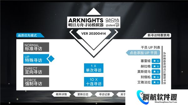 明日方舟抽卡模拟器是明日方舟玩家们专属的抽卡模拟器软件,由明日方舟大神根据游戏的寻访机制进行模拟,公开寻访、限定寻访、常驻寻访等卡池一个也不少,而且在这里抽卡不会消耗舟舟玩家们的资源,当然抽到的干员也