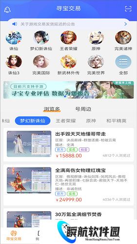 寻宝网APP是由完美世界官方打造的游戏账号交易平台,可为端游与手游玩家提供安全的账号交易服务。在这里玩家可以轻松找到心仪的账号、角色、武器、时装、宠物、宝石及飞行工具等多样商品。平台注重交易安全,每一