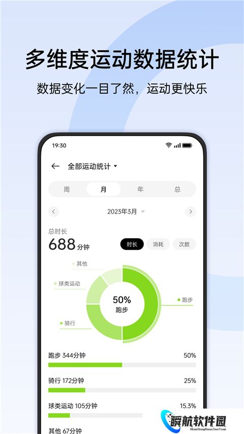 2、记录并展示你的步数、消耗、睡眠和心率等身体数据,支持日、月、年的查看。