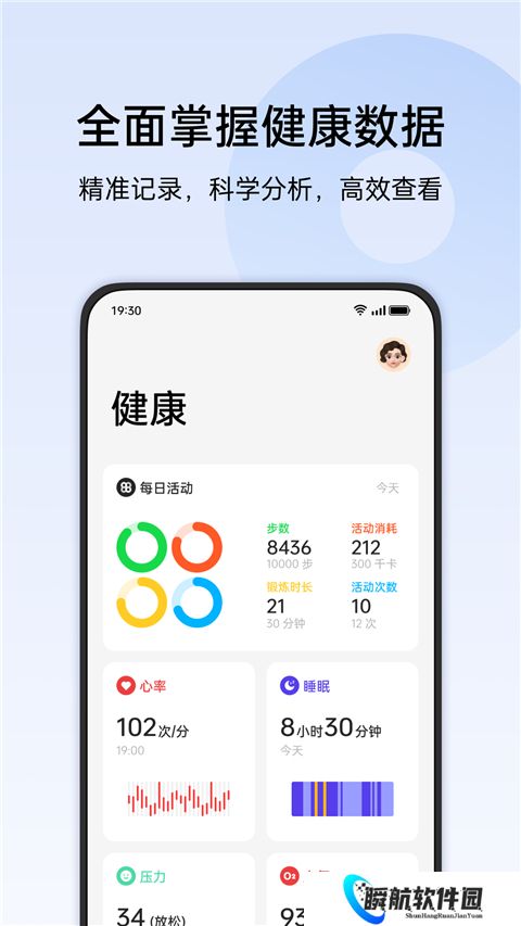1、配合穿戴设备,提供完整的每日活动数据,科学的睡眠质量分析数据。
