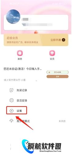 1、进入可乐漫画app右下角"我的",点击【设置】。