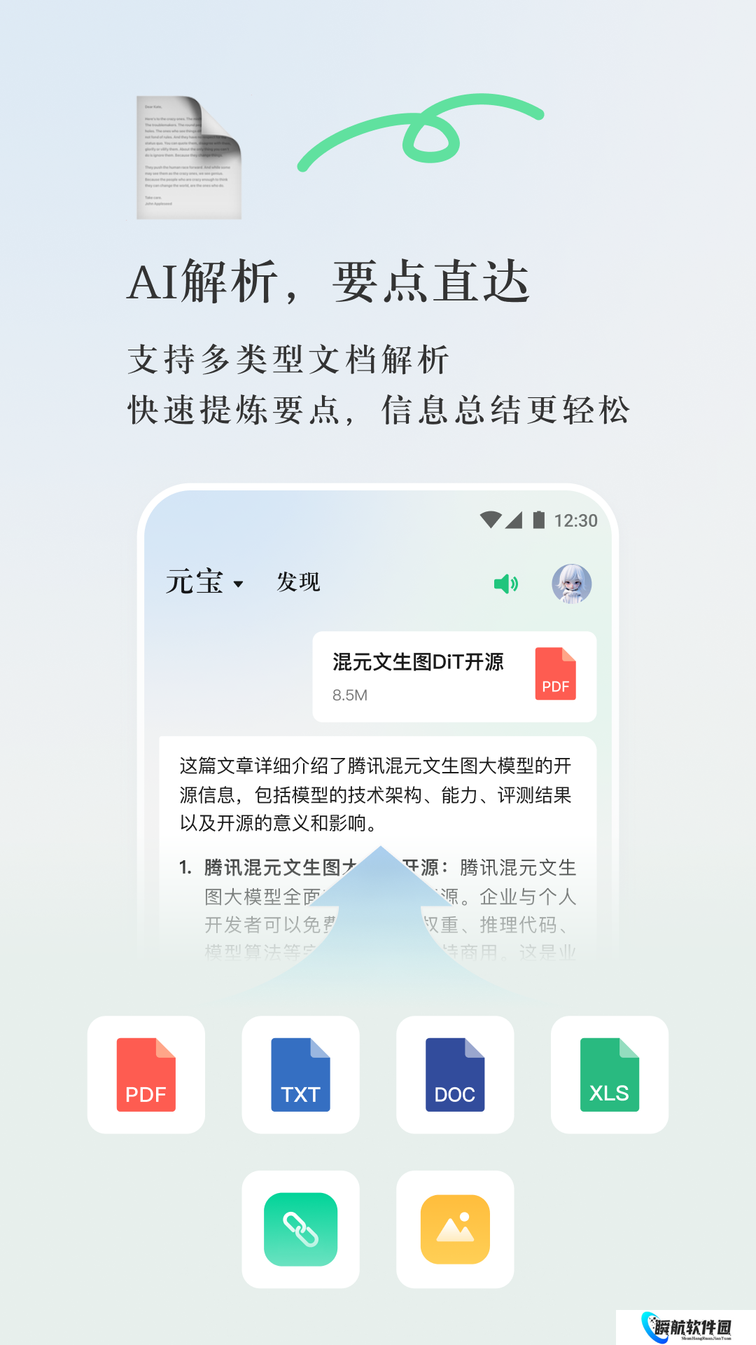 3、元宝支持多种类型的文档识别,包括了PDF、Word、PPT、Excel、TXT等多种格式。