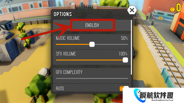 1、进入鲁莽大逃亡2游戏,可以看到游戏默认为英文,此时需要点击右下角的设置按钮;