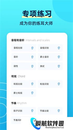 练耳大师是一款专为音乐爱好者量身打造的练耳辅助软件,它提供了丰富多样的音乐学习和练习内容,让使用者能够随时随地便捷地进行专业的练耳训练,以提高音乐能力和技巧。在这里你可以通过手机进行各种乐器的学习辅助,无论是想学习钢琴、吉他、小提琴还是其他乐器,这款软件都能满足你的需求,让你能够通过练习和弦、音程等,来提高自己的音乐能力。
