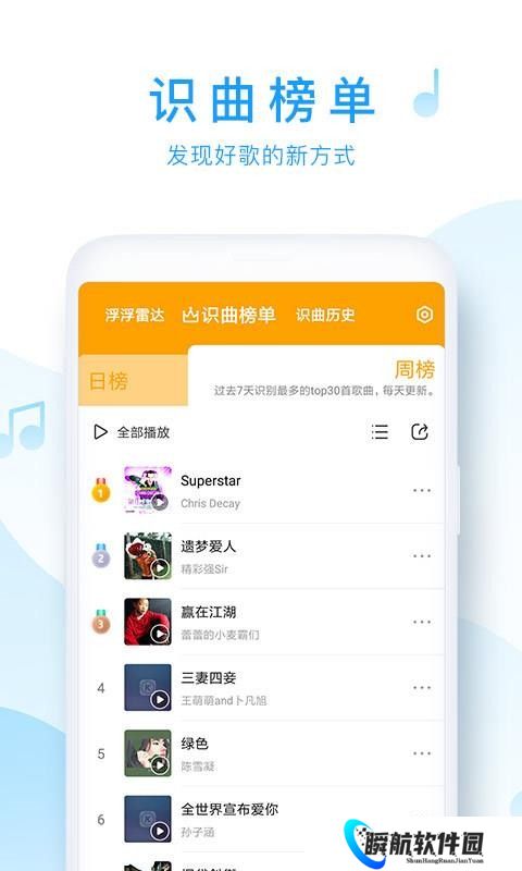 3、强大的识曲功能,精准的识别,更是拥有多种识别歌曲的方式可以任意的选择。