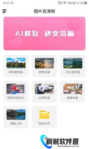 图片变清晰app是一款多功能手机图片处理工具,能够借助强大的AI功能将图片的分辨率与清晰度进行提升,从而为用户带来更好的视觉效果。其内置的图片处理工具能够很好的完成各种必要的图片编辑操作。其编辑功能涵