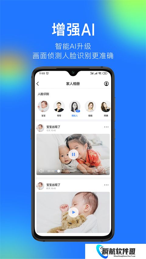 2、1/5秒快门拍照,监控画面极速永久保存在云端,父母、宝贝微笑的瞬间。