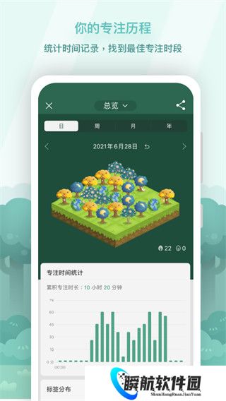 1、以森林记录每一天的专注情形,看看昨天您多麽努力,而今天是否有所进步。