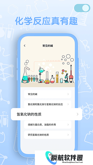 烧杯化学实验室能够帮助中小学生们在手机上模拟出化学物质的反应,从最基本的化学物质、俗称、颜色,到复杂的氧化还原反应等等都可以模拟出来,让化学学习跳脱出枯燥乏味的课本知识中,用更直观的化学实验帮助学生们