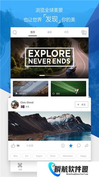 djigo4是一款专为大疆无人机打造的管理平台,全新的4.0最新大疆无人机也同样支持使用该软件进行连接控制,连接完成后进行控制拍摄、录制、飞行、定位等功能都是可以直接使用的,让无人机的操控更为的便捷。djigo4中无人机所拍摄的内容会实时的上传到该软件当中,用户可以随时的将其导入到设备中或者进行分享到平台上,让更多的人看到航拍的美景。