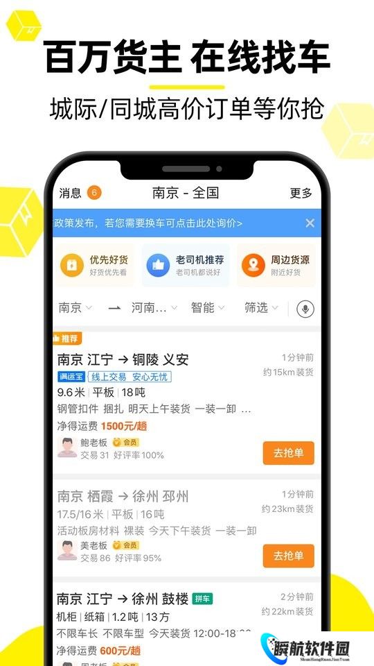 3、货源信息平台每日千万条及时更新,能够降低司机返程车、回头车的空返率。