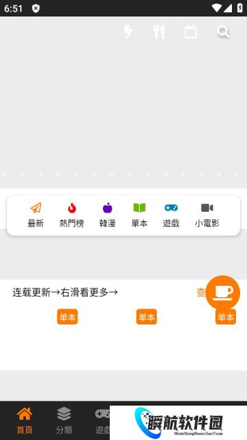 1、漫画平台当中有着多种多样的分类,不同类型的漫画资源都可以在这里点击筛选。