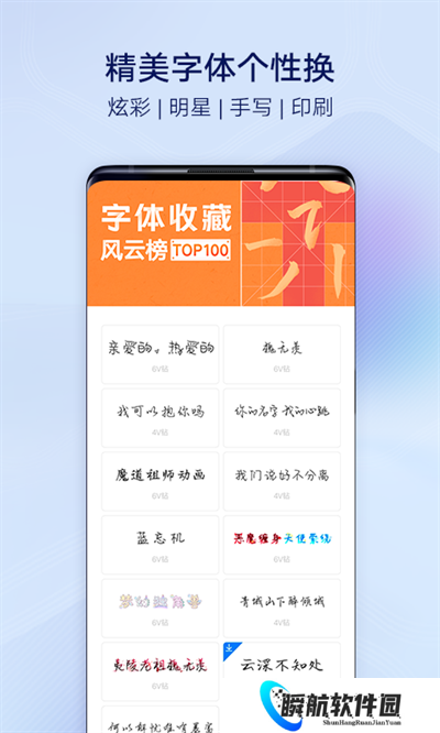 3、井柏然手写体、王俊凯手写体等等个性字体全都有,免费供你挑选。