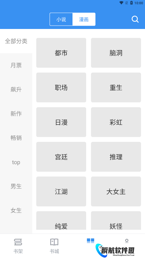 1、为读者们准备了书架、书城、分类、我的四大看书版块,随便读者们怎么找小说。