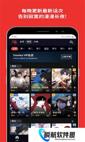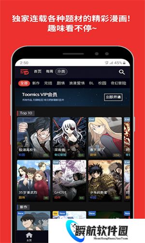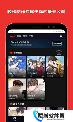 toomics玩漫是一款专为热爱韩漫的漫迷精心打造的正版漫画软件,其中拥有海量的免费漫画等你来阅读,只需花费少许流量,即可畅享海量的漫画资源。软件内的漫画均采用了中文版,并支持多语言切换,让各位漫迷免