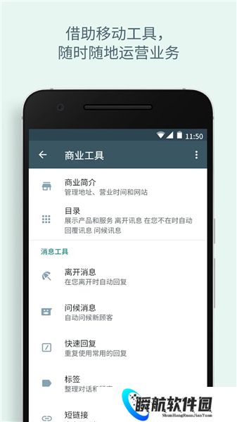 商户可于WhatsApp商业版展示公司资讯,包括简介、地址、营业时间等。设置清晰的营业时间配合自动「离线回复」,即使顾客于休息时间内查询,仍可获得简单回复,减少相关的客服投诉。