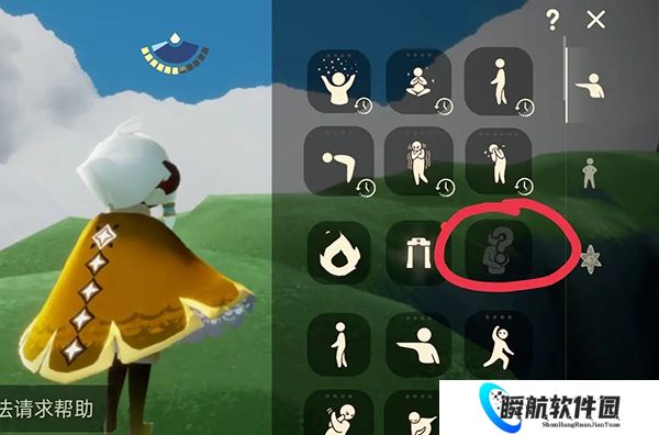 (五)作为新入坑萌新,你可以主动发起求助,如下图红圈圈出;操作路径:先点屏幕中上方的光翼,再点红圈标注的按钮;