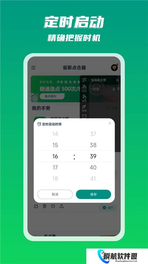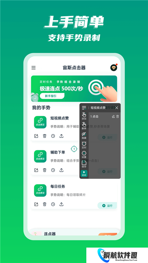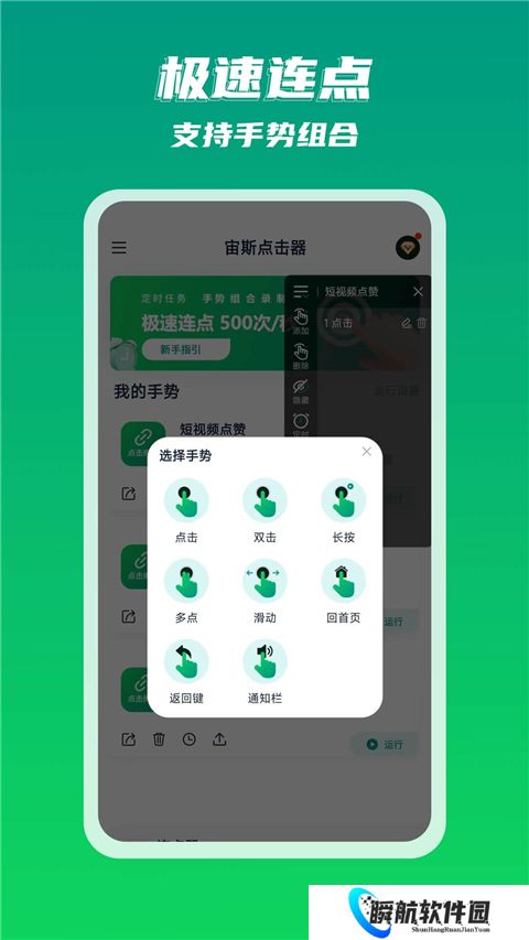 宙斯点击器是为安卓手机打造的一个连点器软件,它可以替代网友们频繁点击手机屏幕的工作,点击、连点、滑动等操作都可以轻松实现,而且手势操作还支持切换触发模式与时间间隔,使其适用于更多频繁点击手机的工作。对于长时间不适用手机的时候,宙斯点击器也可以作为手机的功能启动器使用,设置脚本的启动时间,在时间到达之后自动触发手机功能。