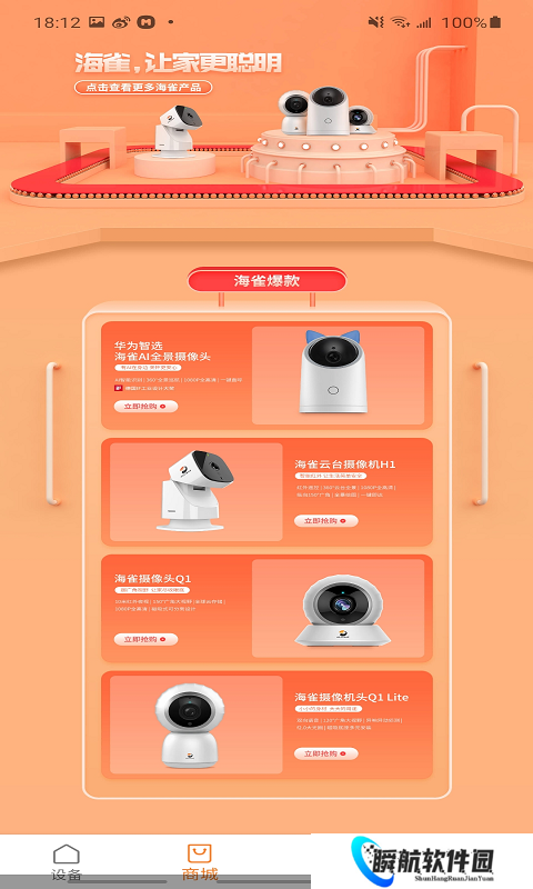 海雀摄像头是为海雀品牌旗下智能摄像头、插座、开关等设备打造的一个远程管理软件,以视频采集技术作为核心,通过手机远程控制智能摄像头的拍摄角度,把你的手机变成一个多用遥控器,随时随地都能将家人带在身边。支