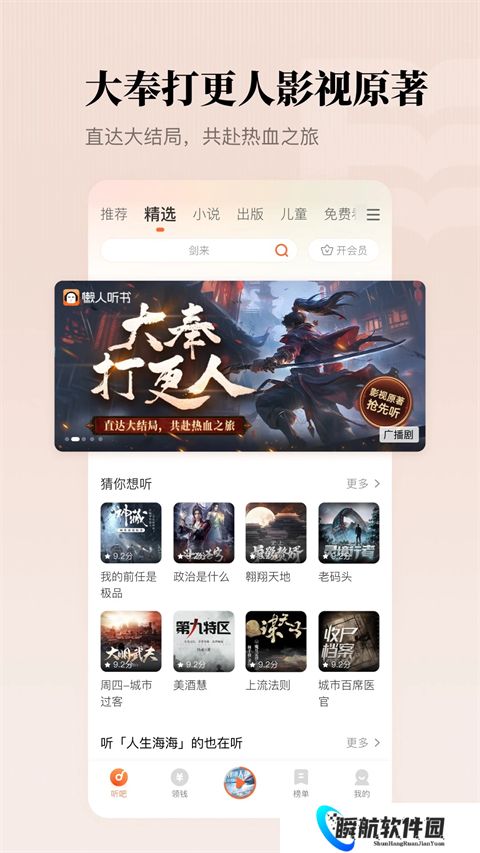 懒人听书有声小说是国内最大的一个手机听书平台,不管是最新最热门的连载小说,还是学龄前的儿童学习资料,这里几乎都有涵盖,只为打造出最国内最大的一个有声读物播放平台,用声音去感受小说中的精彩剧情。有声小说