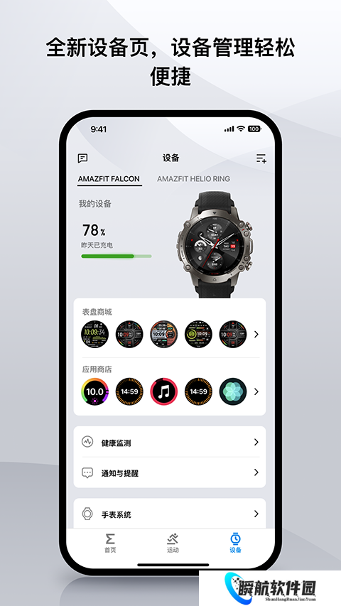 3、提供Zepp与Amazfit品牌设备管理功能:通知管理、表盘更换、小部件排序等。