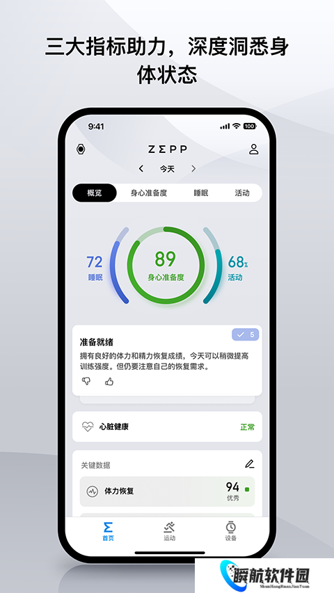 1、帮助你连接和管理手表的数据,时刻监测身体状态,保持较好的生活习惯。