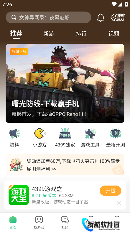 499游戏盒子又可以被叫做4399游戏盒子,这是由4399官方推出的游戏盒子软件,收录全网各类热门和冷门游戏作品,4399网页上的各种小游戏也能在这里畅玩,打造一站式游戏体验。软件每天同步游戏官网更新游戏资讯与活动信息,近期新游的测试信息也能一手掌握,不错过任何活动的奖励。内置玩家交流社区,与其他游戏爱好者讨论游戏内容,还有机会看到大神的试玩视频,帮助小白玩家轻松掌握游戏玩法。