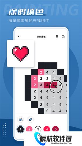 1、爱笔思画提供涂鸦填色功能,通过海量像素填色,发挥自己的想象力展现出更好观感。
