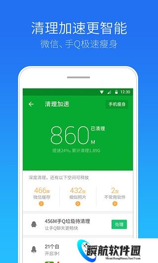 1、软件不仅能够进行常规清理,能够深度挖掘手机空间中的隐藏*,释放更多内存。